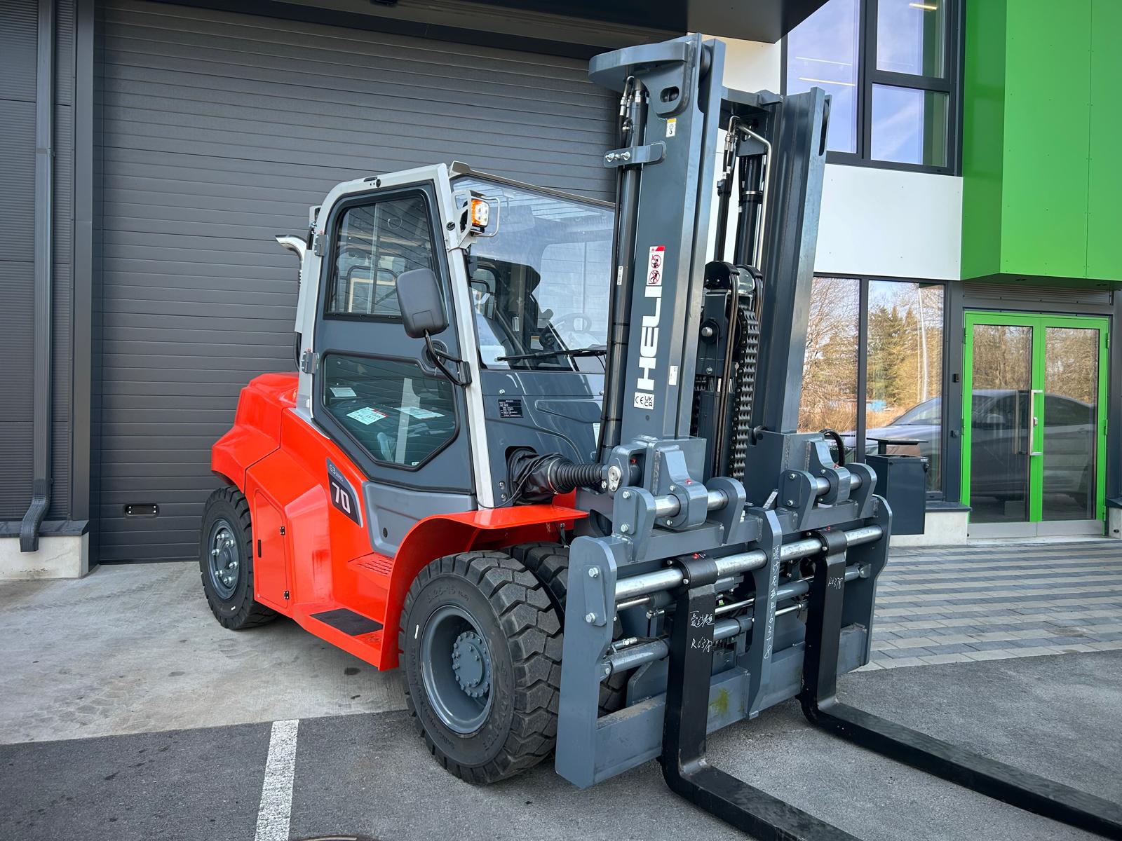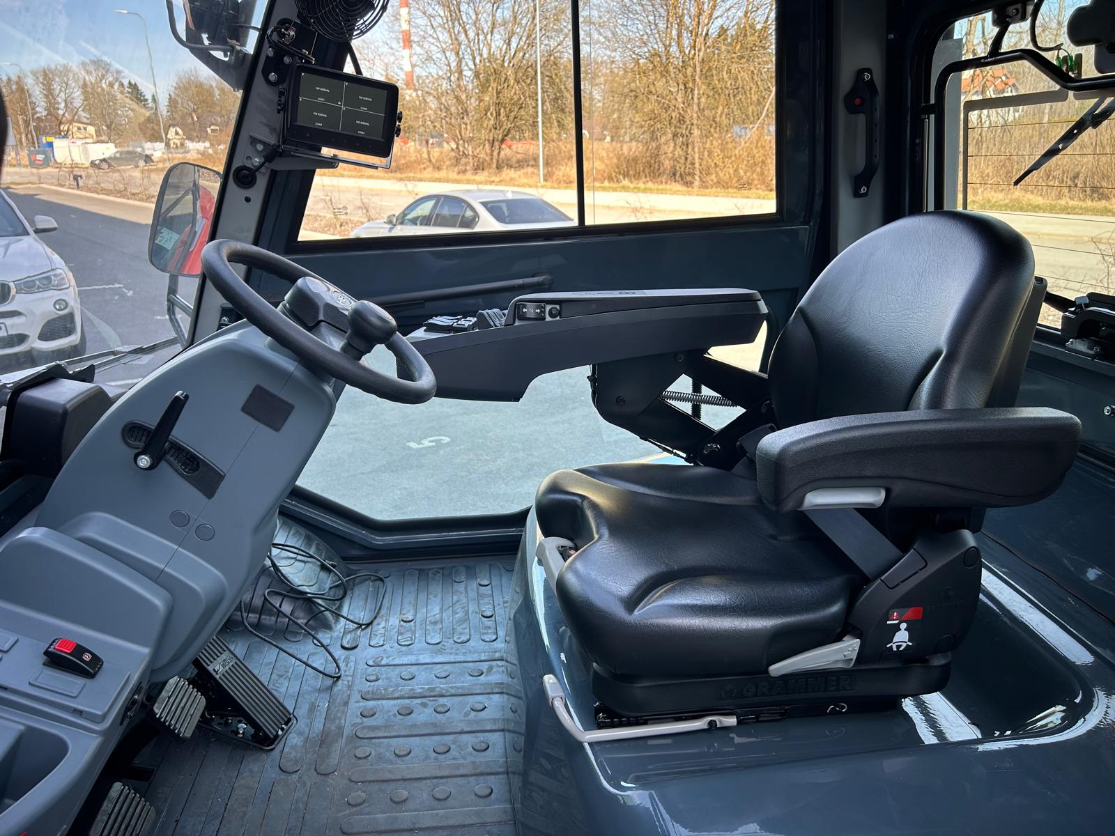 Hüdraulika juhtimine käetoelt + käiguvahetus käetoelt, Täiskabiin koos soojenduse + konditsioneeriga (A/C), Kahvlite külgnihe + Positsioneer, Topeltrehvid esimesed, Grammer Comfort iste käetugedega, Raadio, Laser + Kaamera kahvlitel, 1 820mm kahvlid.